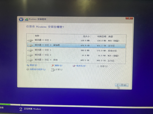 选择所要安装的盘符,本次使用的是一个512G的固态硬盘,不再进行分区了(或者部署完系统后进行卷的压缩进行分区)