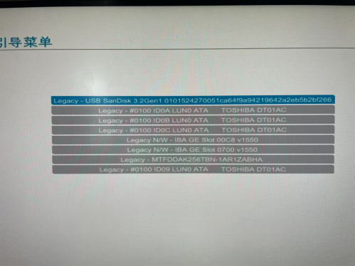 这时候选择我们所做系统盘的优盘 SanDisk