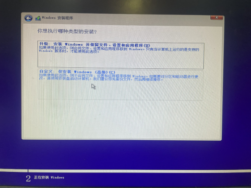 3.安装类型:选择"自定义:仅安装Windows"
