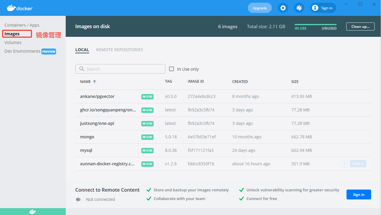 (2)镜像: 镜像是容器的基础,它包含了一个应用程序运行所需的所有文件系统内容、运行时、库和环境变量。镜像是只读的,可用于创建容器实例。