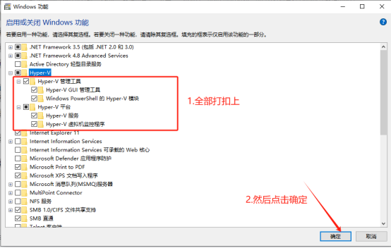 (4)控制面板>程序>启用或关闭Windows功能:Hyper-V