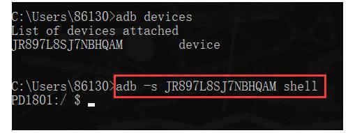 adb -s <设备号> shell:多设备环境下指定特定设备进行连接