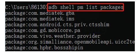 其他常用参数: - -d:仅显示被禁用的包 - -e:仅显示当前启用的包 - -s:仅显示系统应用包 - -3:仅显示第三方安装包 - xxxx:按关键词过滤包名