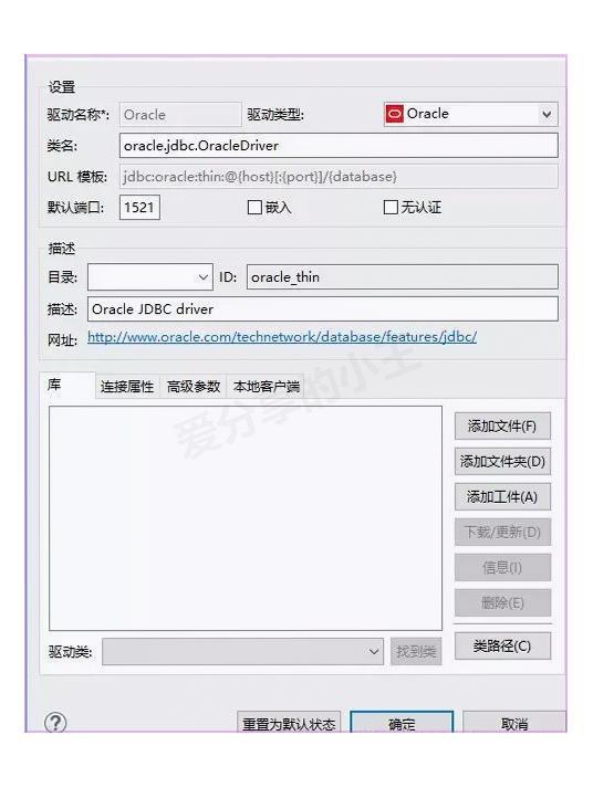 根据界面提示的网址,手动下载对应的JDBC驱动文件(如ojdbc8.jar)。然后点击"添加文件(F)"按钮,选择并添加该文件。