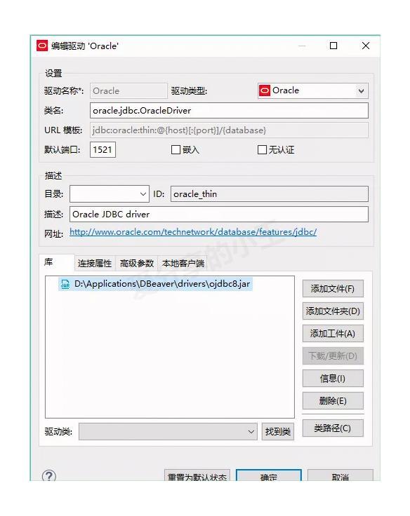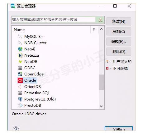 选择你需要的数据库驱动(如Oracle),点击"编辑(E)..."按钮。