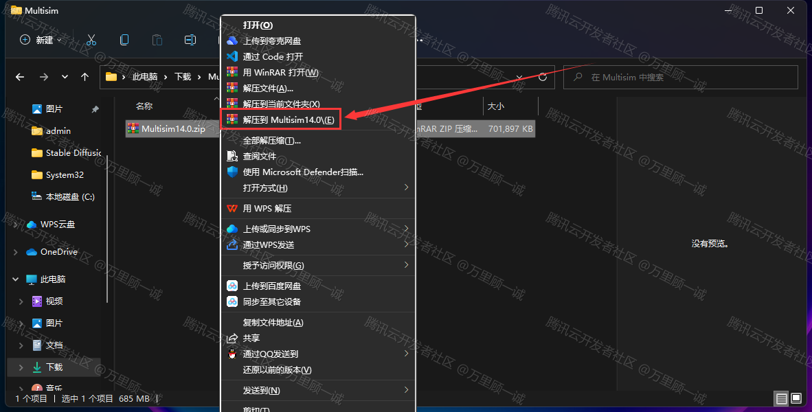 单击选中 Multisim14.0安装包,右键选择 解压到Multisim14.0: