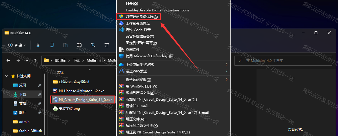 单击选中 NI_Circuit_Design_Suite_14_0,右键选择 以管理员身份运行