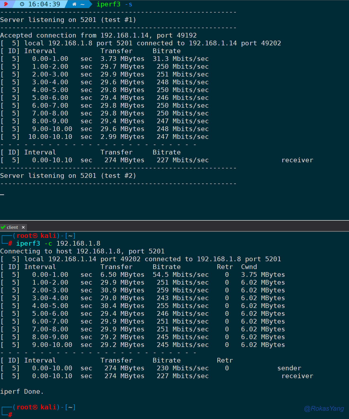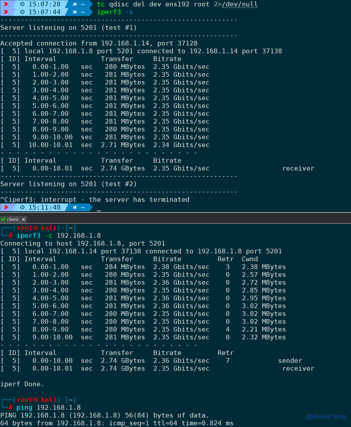 客户端 A | 192.168.1.14 | Kali Linux | 2.5Gbps | 100ms左右 | TCP |