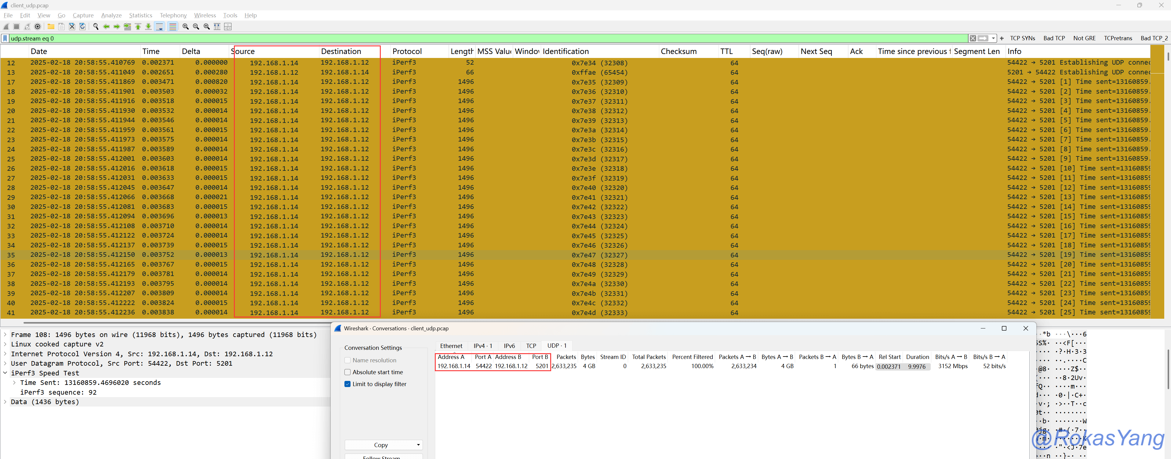 从客户端的抓包看,即使是UDP压测,元数据的交换也是用的TCP: