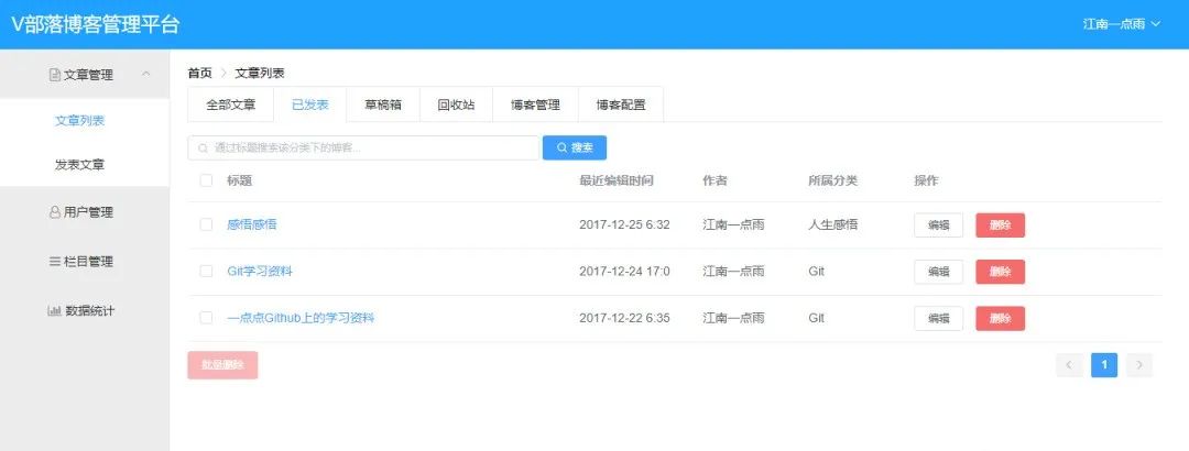V部落,Vue+SpringBoot实现的多用户博客管理平台!