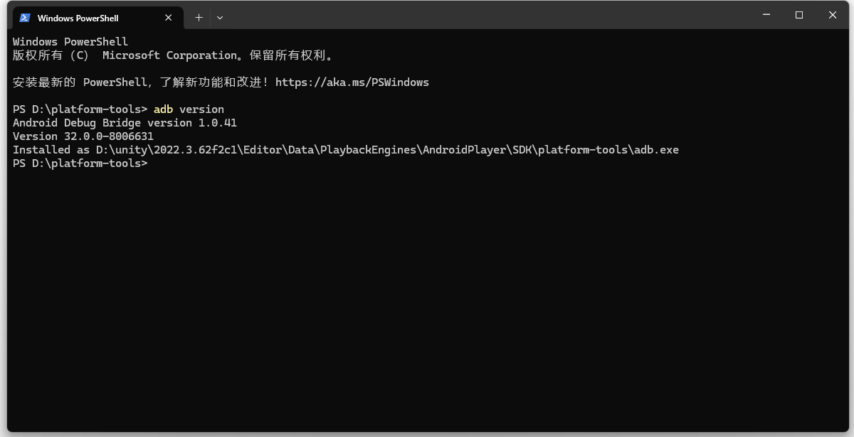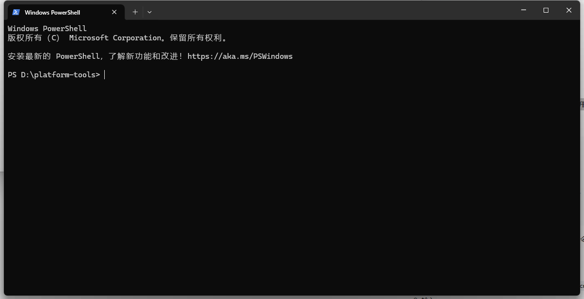 platform-tools 文件夹移动到合适的位置,例如 D:\。platform-tools 文件夹,在空白处 按住 Shift + 右键,选择 “在此处打开 PowerShell 窗口”(或“在此处打开命令窗口”)。