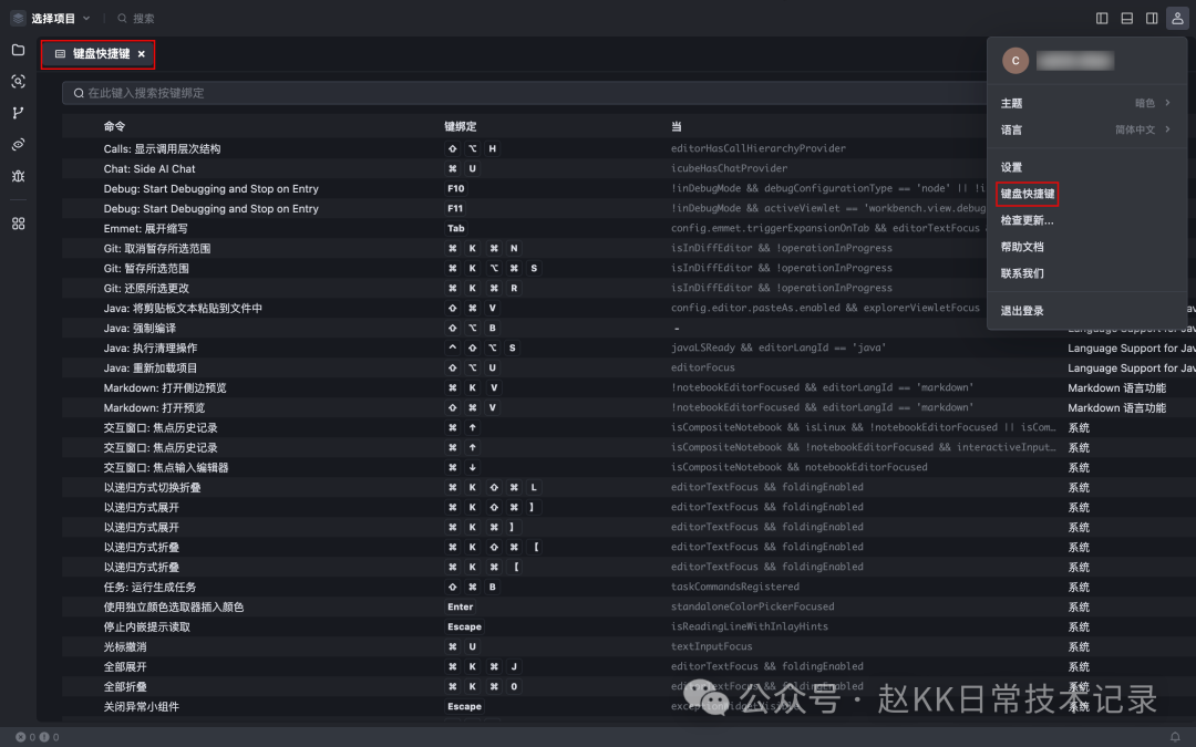 Trae 打开 键盘快捷键 窗口。