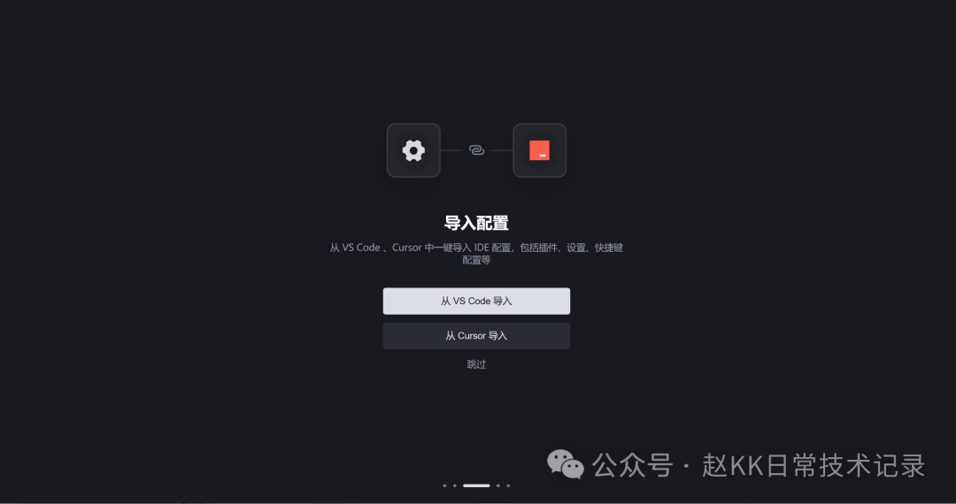 若你的电脑中已安装并配置 VS Code 或 Cursor,你可以点击 从 VS Code 导入 或 从 Cursor 导入 按钮。系统将会从对应的 IDE 中获取插件、IDE 设置、快捷键设置等信息并一键导入到 Trae 中,帮助你快速从其他 IDE 切换到 Trae。