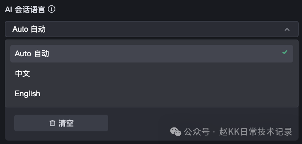 在 AI 会话语言 处,选择 AI 回答时所用的语言。可选项如下: