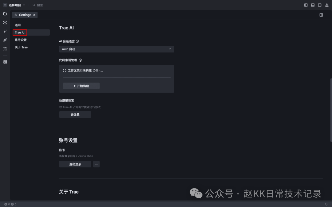 从左侧导航栏中,选择 Trae AI。