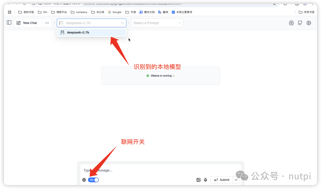 安装之后,他会检索到本地安装到模型,点击选择就好,如果要联网,点击最下面的联网开关就好。