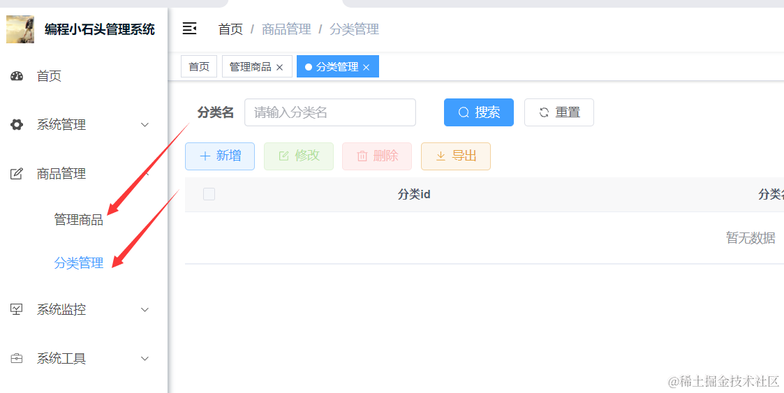 我们重启Java项目以后,去浏览器里刷新页面进入商品分类管理