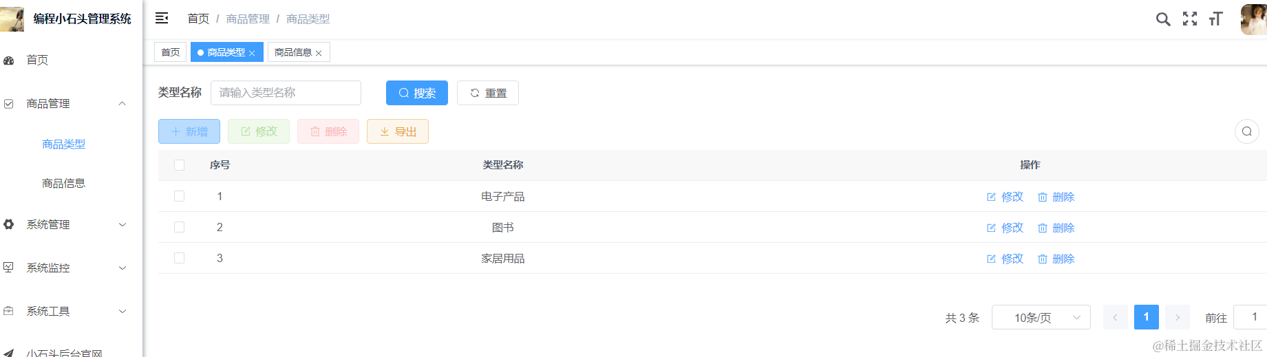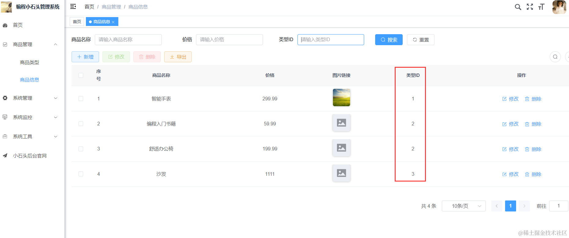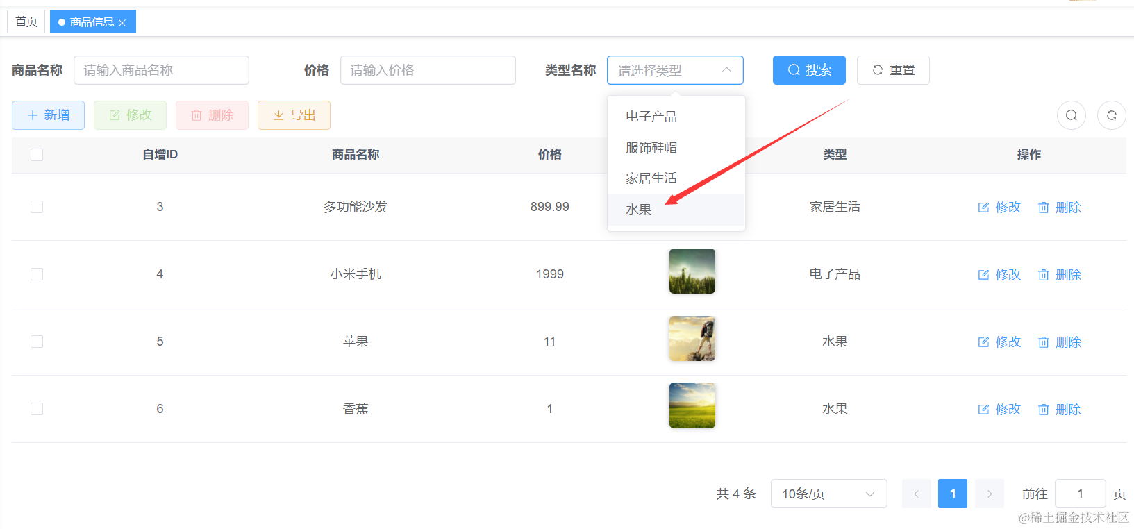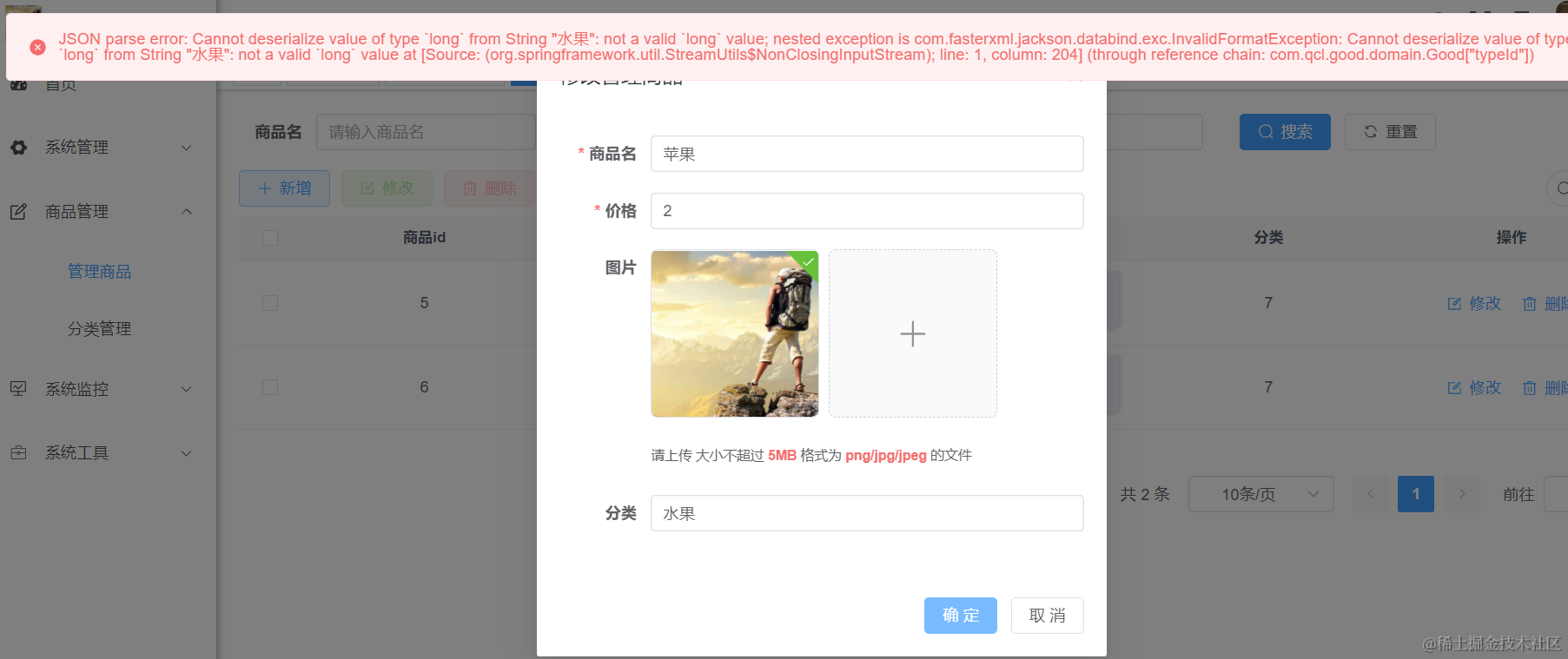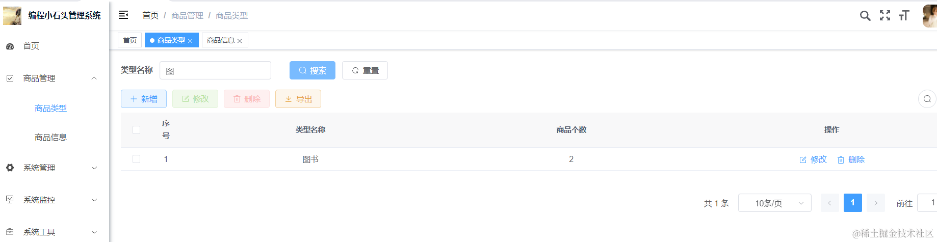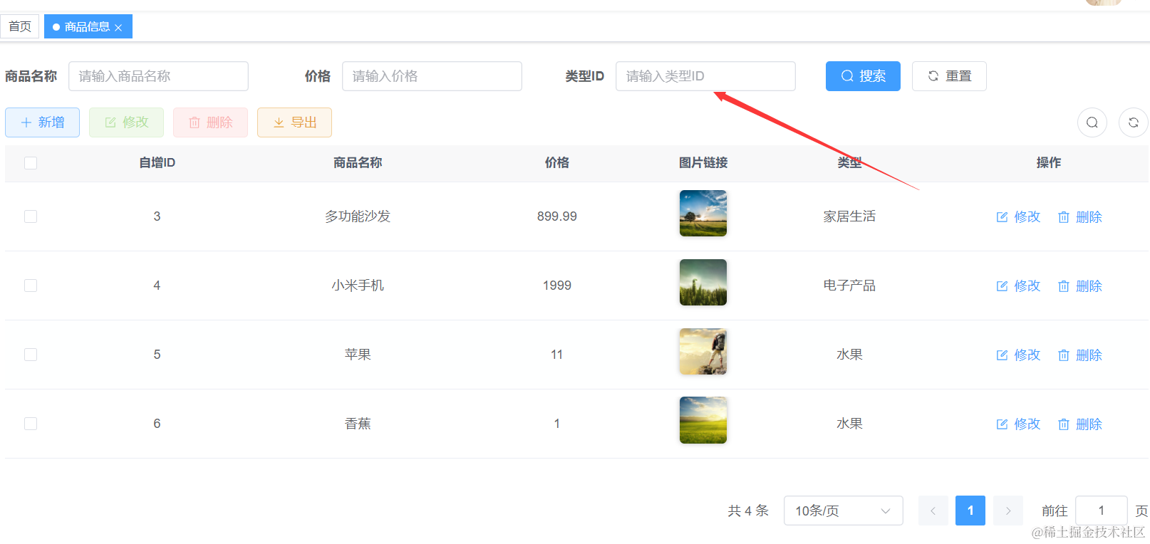 我们重启Java项目以后,去浏览器里刷新页面进入商品管理,然后点击下刷新