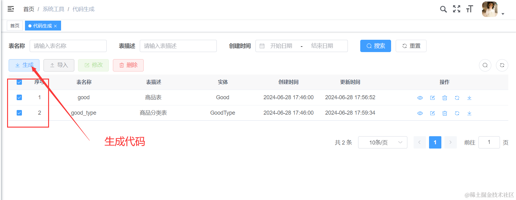 自动生成Java和vue代码正式若依的强大之处,接下来我就来带大家快速的实现一个对用户信息进行增删改查的小案例。我们先讲单表和主子表生成代码,然后再讲树形表生成代码。