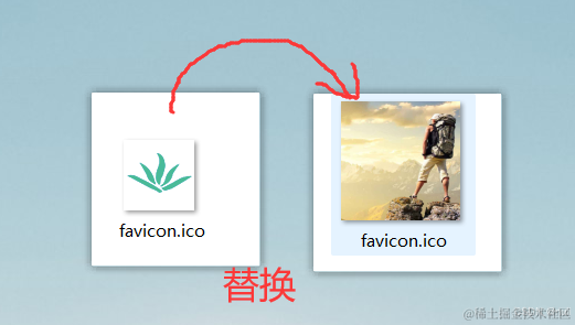 我们只需要自己找一个图标,名字改成favicon并且图片的后缀也改为 .ico就行。如我这里用自己的头像来替换这个默认图标。