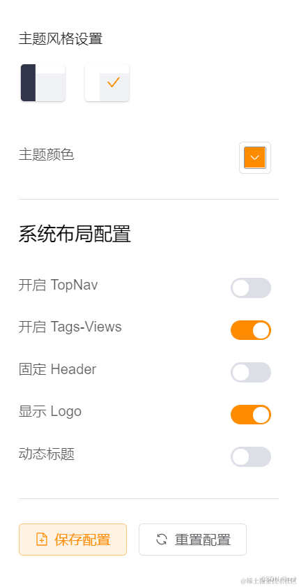 点击布局设置,就可以设置主题和颜色了 如我们把深色侧边栏改为浅色侧边栏