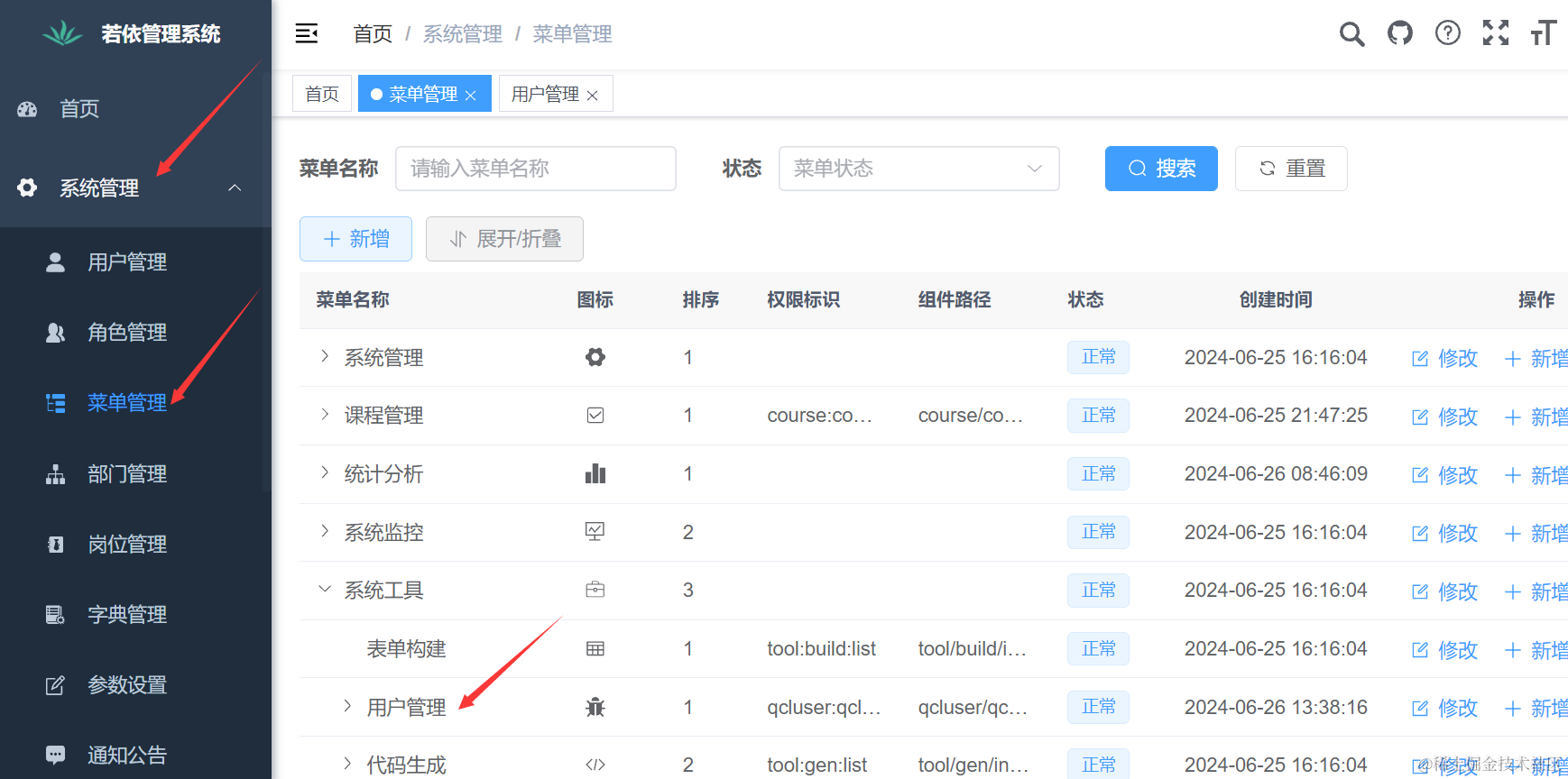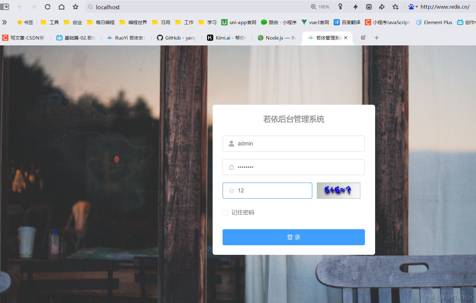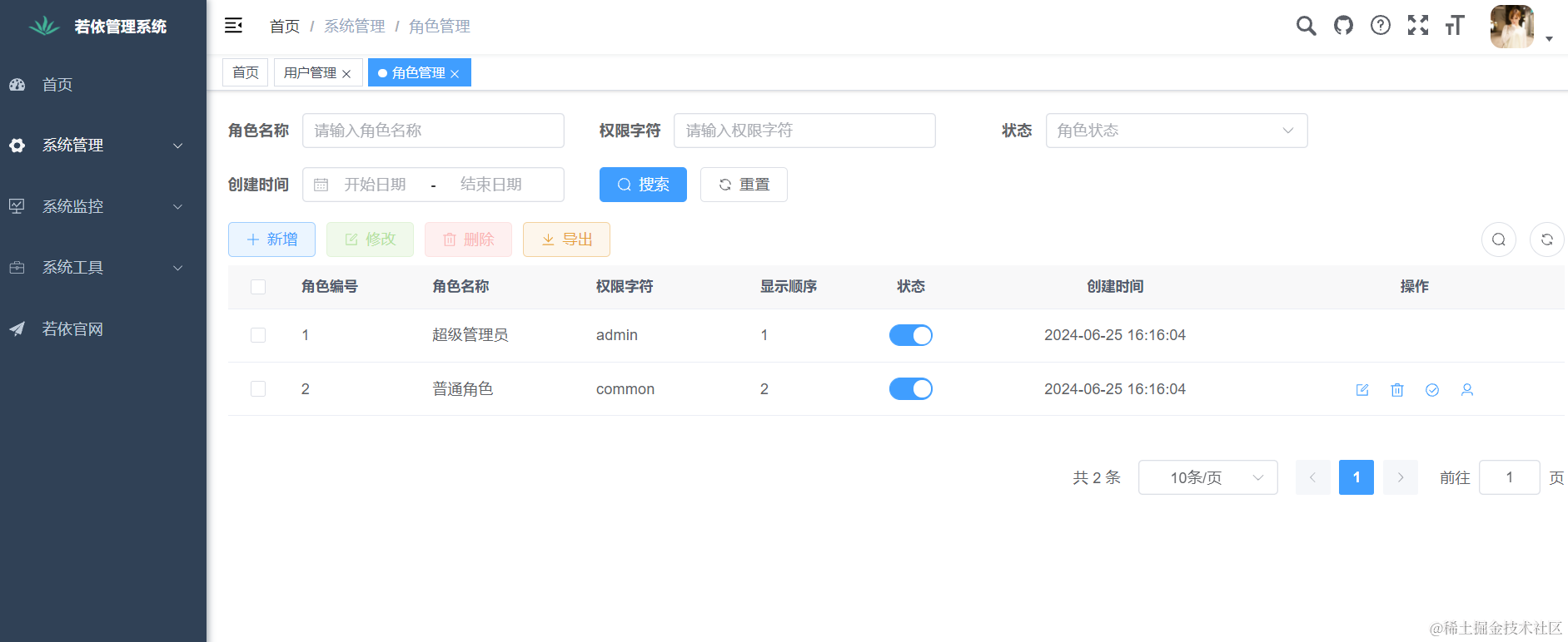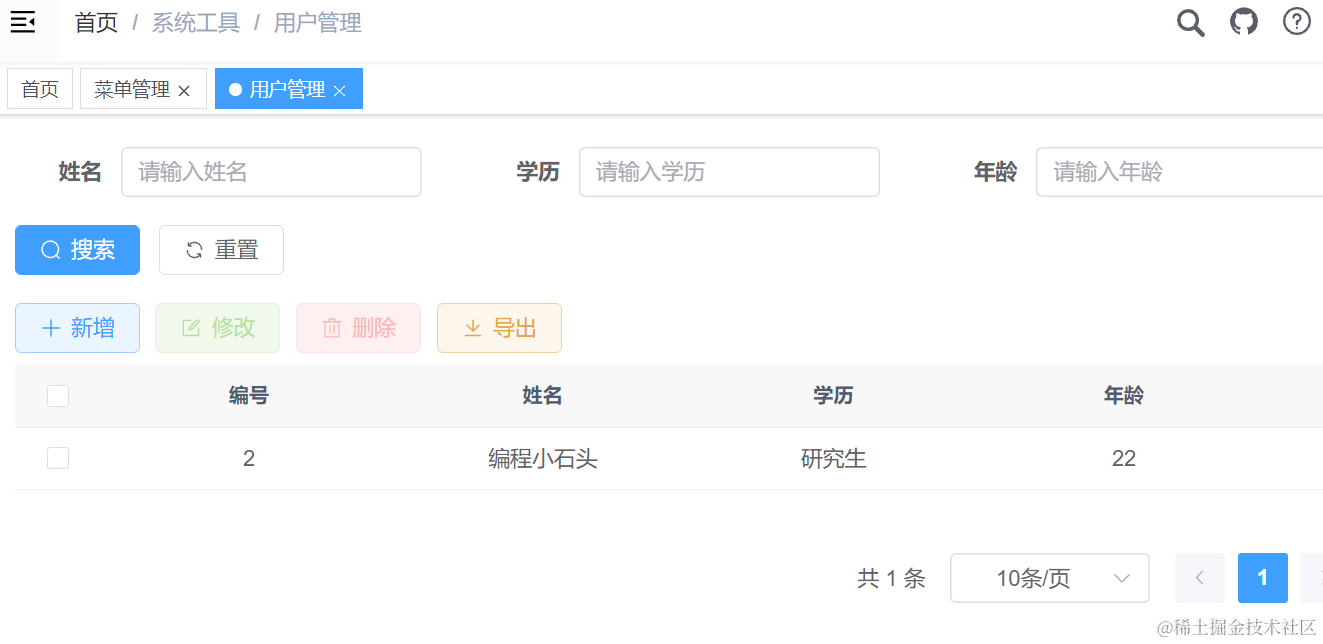到这里我们整个前后端项目就运行成功了。 使用默认账号先登录进去看看效果