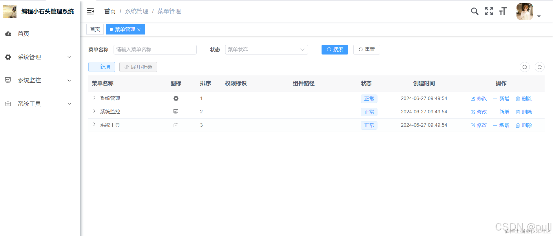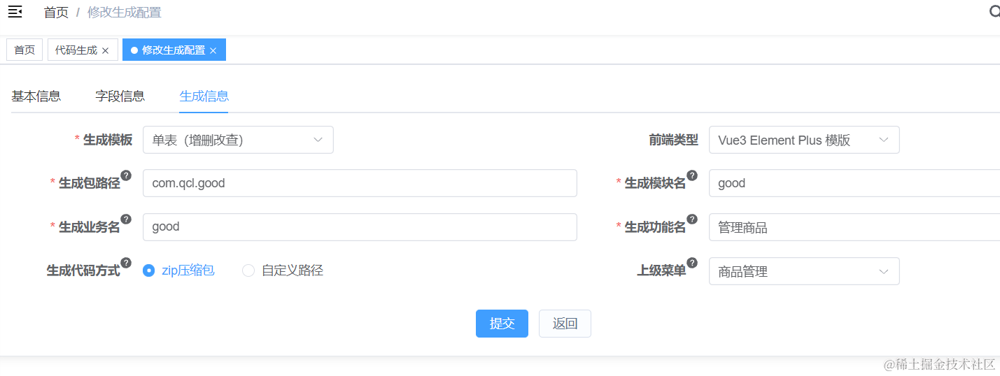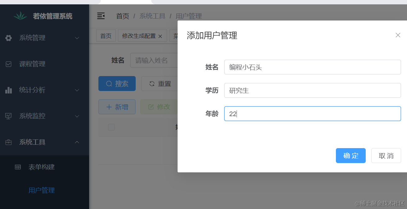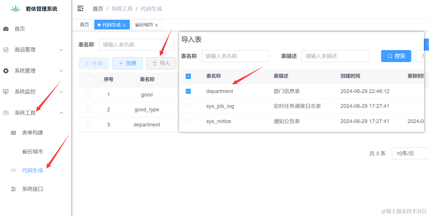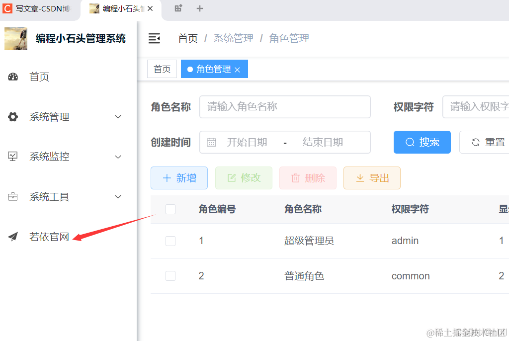 这里我们可以借助若依自动生成Java和vue3代码,这就是若依的强大之处,即便你不会Java和vue开发,只要跟着石头哥也可以快速的开发一款Java和vue程序。