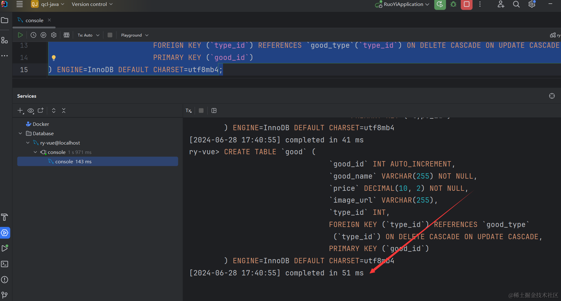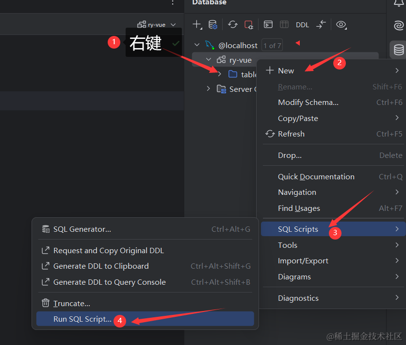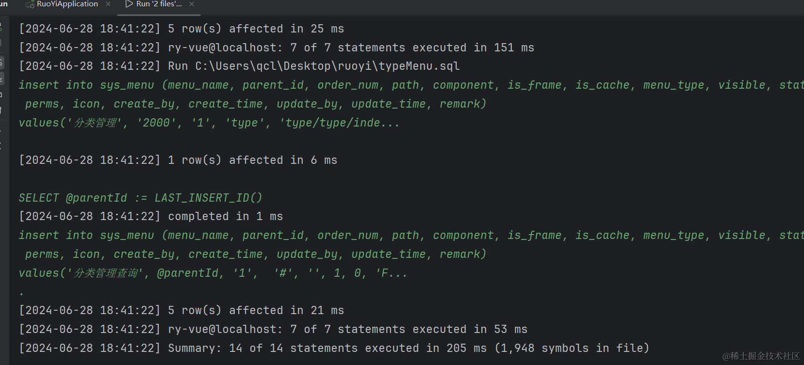 创建好ry-vue数据库,这里数据库名最好也是用ry-vue,因为后续运行项目时官方代码里就是取得这个数据库名。创建好数据库以后,就可以执行sql下的文件了。我们先执行quartz.sql文件