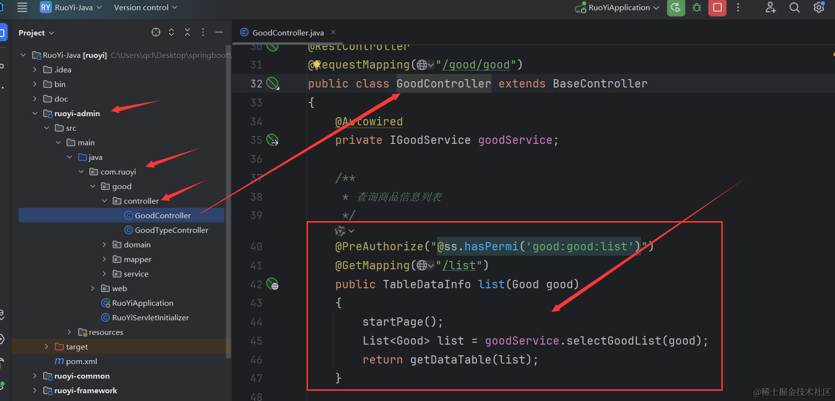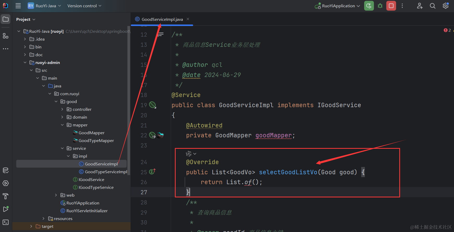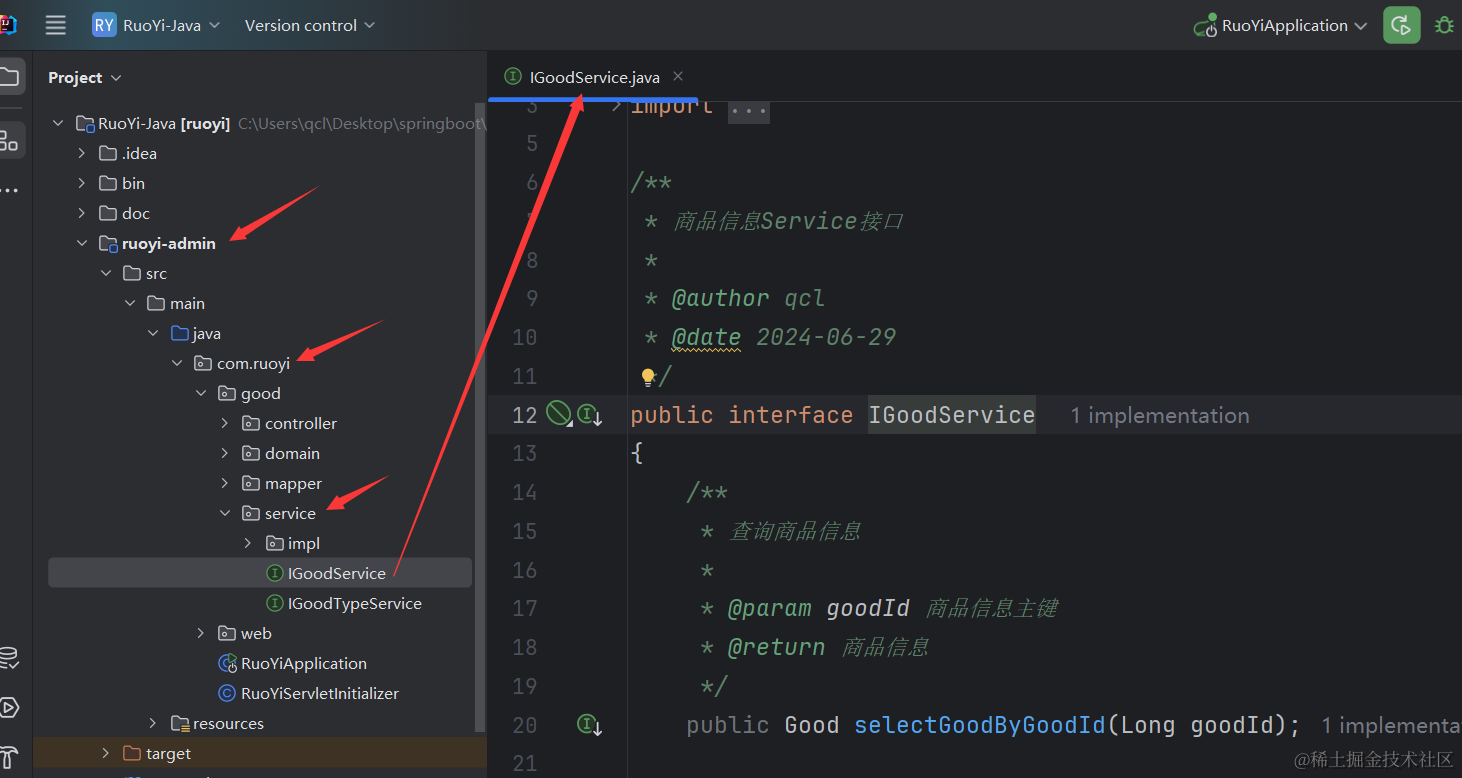 到这里我们业务层的接口和实现类就定义好了,最后我们还需要去改造GoodController