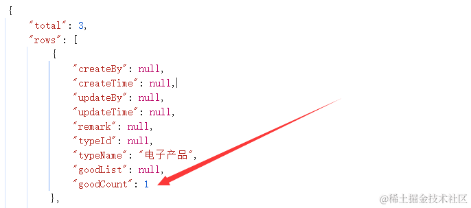 我们就是要在商品分类列表返回的数据里加一个goodCount字段