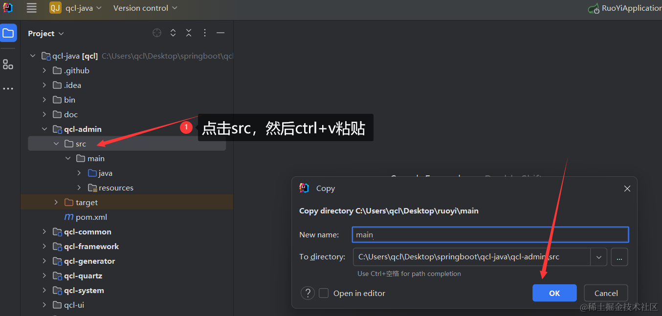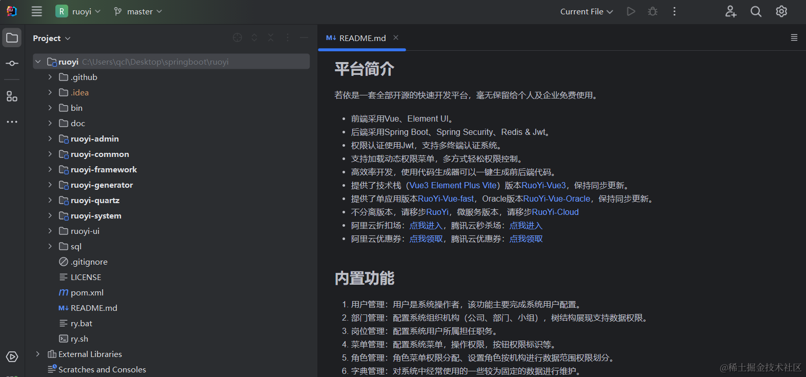 我们使用idea开发者工具来去若依官网下载官方提供的springboot项目