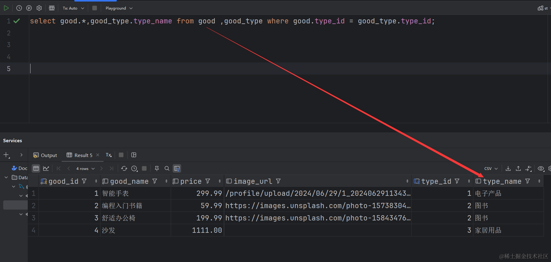 INNER JOIN good_type ON good.type_id = good_type.type_id