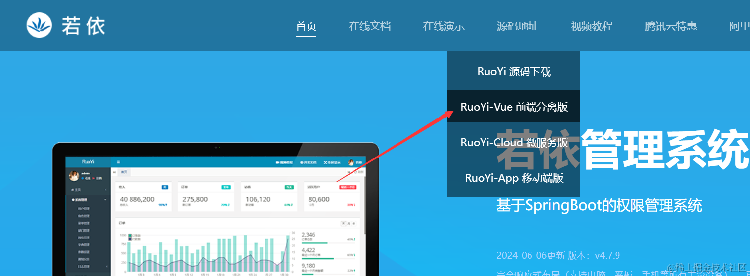 今天我们来借助若依来快速的搭建一个springboot+vue3的前后端分离的的Java管理后台,后台网页使用vue3和 Element Plus来快速搭建。
