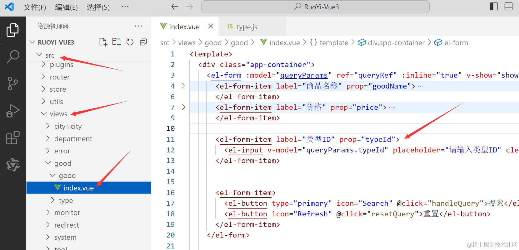 </el-form-item>这段Vue代码是一个表单组件,用于选择类型名称。具体功能如下: