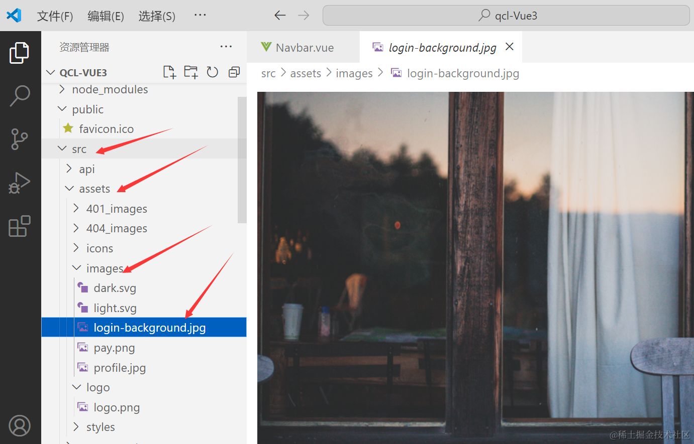 看代码可以找到我们背景图是在src目录下