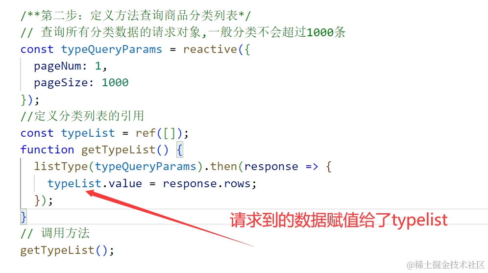import { listType } from "@/api/good/type";第二步:定义请求商品分类列表的方法