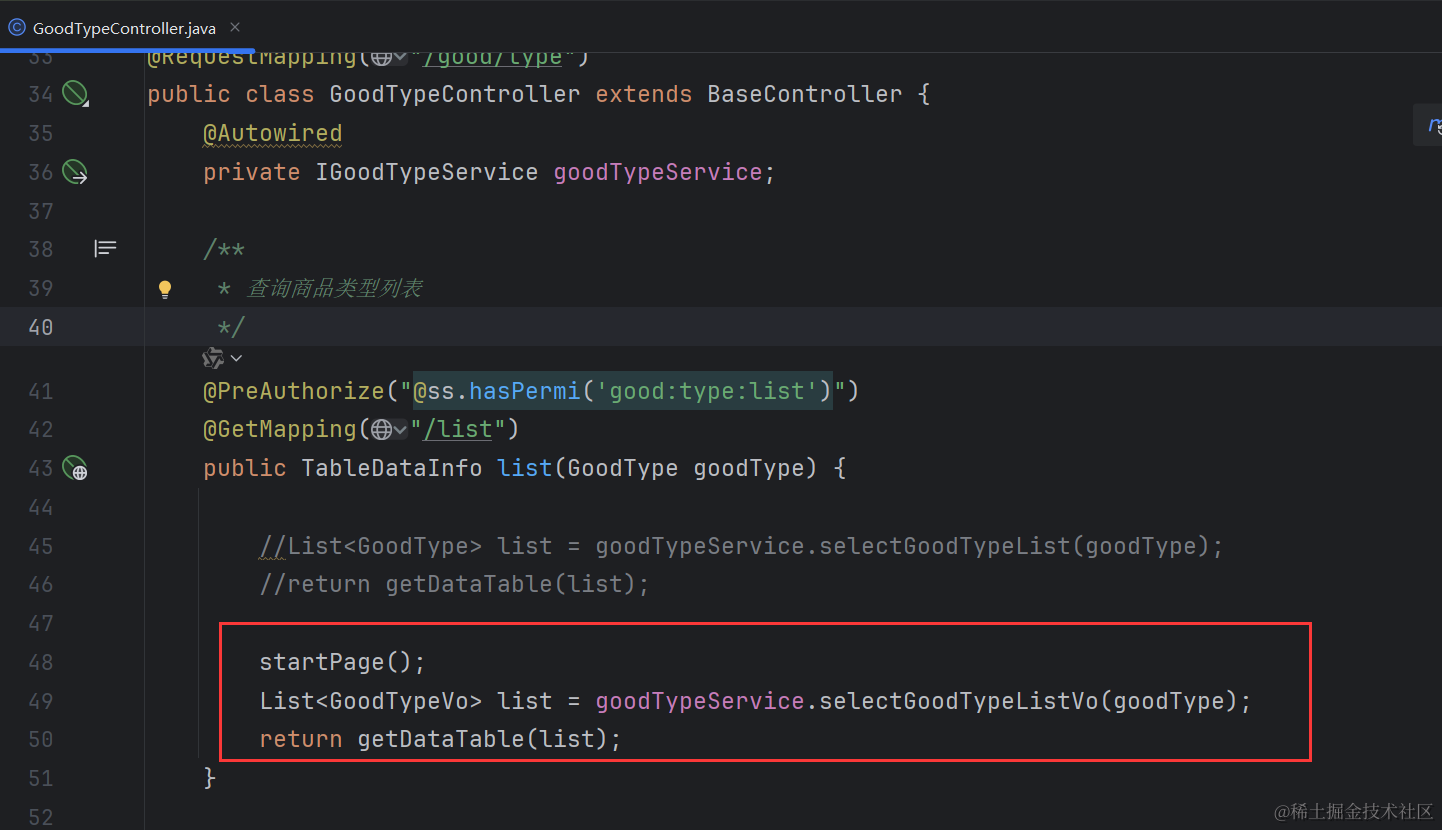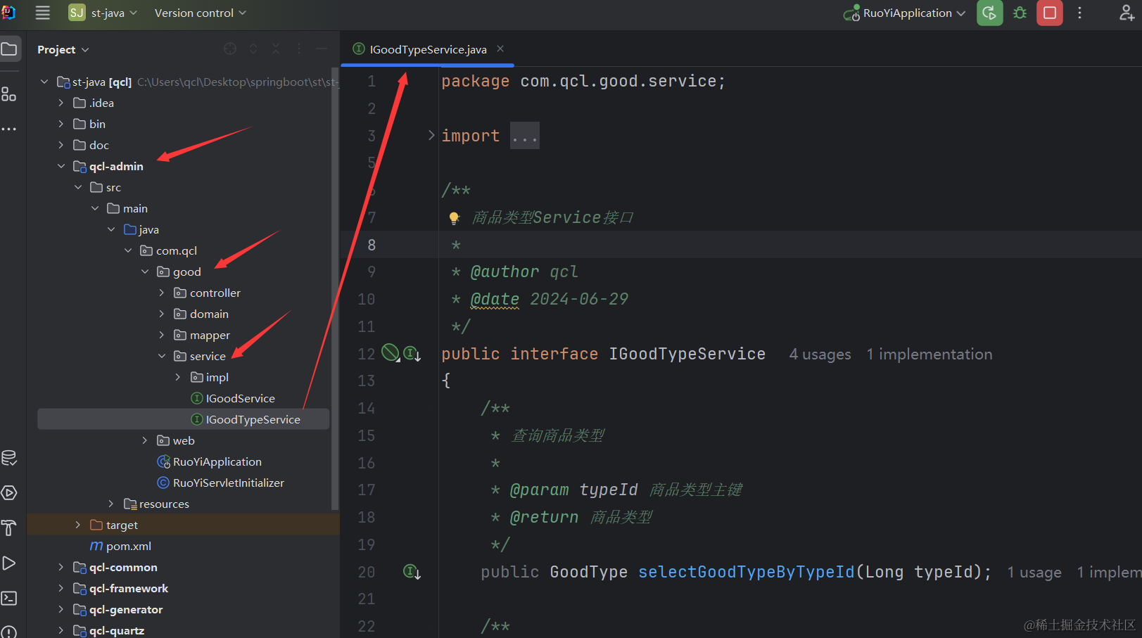 到这里我们业务层的接口和实现类就定义好了,最后我们还需要去改造GoodTypeController