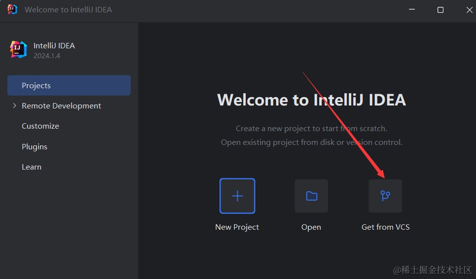 如上图所示,我们拿到下载地址即可。 然后打开idea,如下图所示,使用get fromVCS