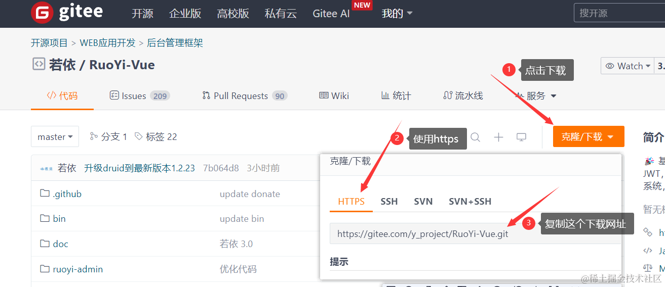 也可以像上面Java项目一样借助idea的git下载,我们这里为了让大家学习不同的方式。就用另外一种方式教大家下载项目源码吧。