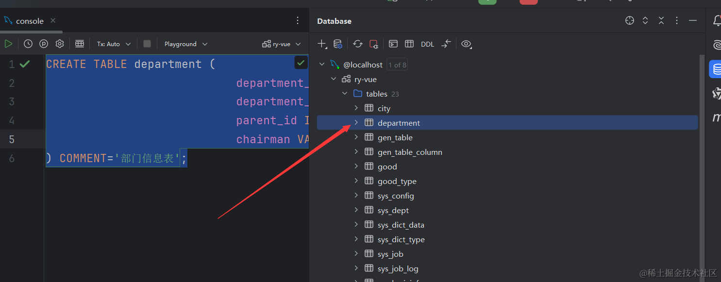 我们这里以一个用户表为例,首先就是去若依后台,创建一个数据表。这也是若依的强大之处,可以快速的创建数据表。 建表语句先给到大家。