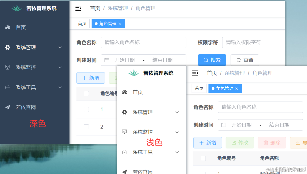 细心的同学可能发现,前端网页左侧边栏里还有若依文案