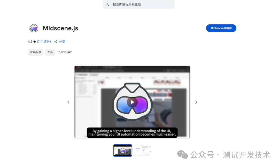 Midscene.js你只需用自然语言描述自动化步骤,它就能理解你的指令,并在网页上精准执行相应操作。Midscene.js 提供了强大的数据提取功能,你可以描述想要的数据结构,它会以 JSON 格式将数据返回给你。如果你想快速体验 Midscene.js 的核心功能,安装 Chrome 扩展是个不错的选择。打开 Chrome 浏览器,进入 Chrome 网上应用店,搜索 “Midscene.js”,找到对应的扩展程序后,点击 “添加到 Chrome” 按钮,按照提示完成安装。