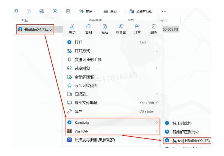 第1步:解压hbuilderx安装包 下载完成后,找到你的HBuilderX4.75安装包。 右键点击安装包,选择"解压到HBuilderX4.75"文件夹。