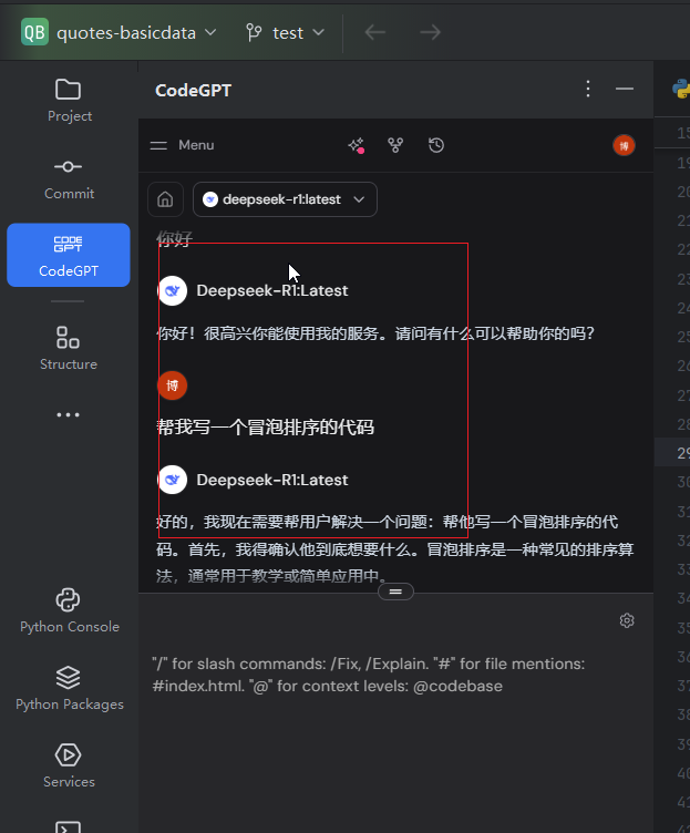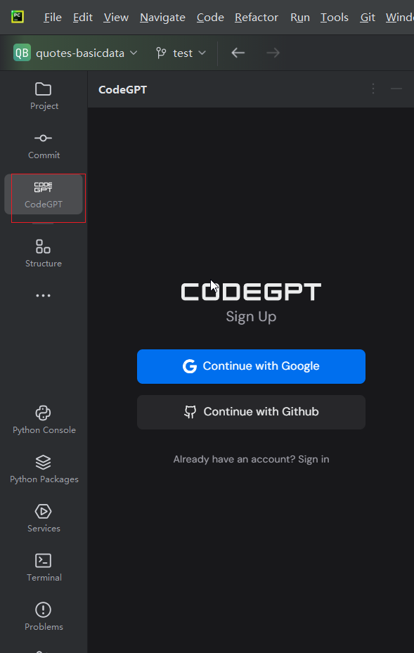 安装 CodeGPT 插件,安装之后点击左侧入口: