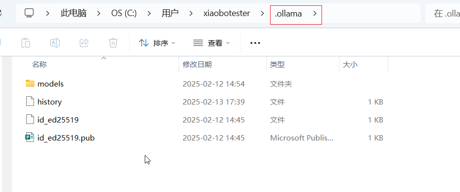 C:\Users\XX\AppData\Local\Programs\Ollama ,可以在windows的文件管理其中输入%LOCALAPPDATA%\Programs\Ollama快速进入目录