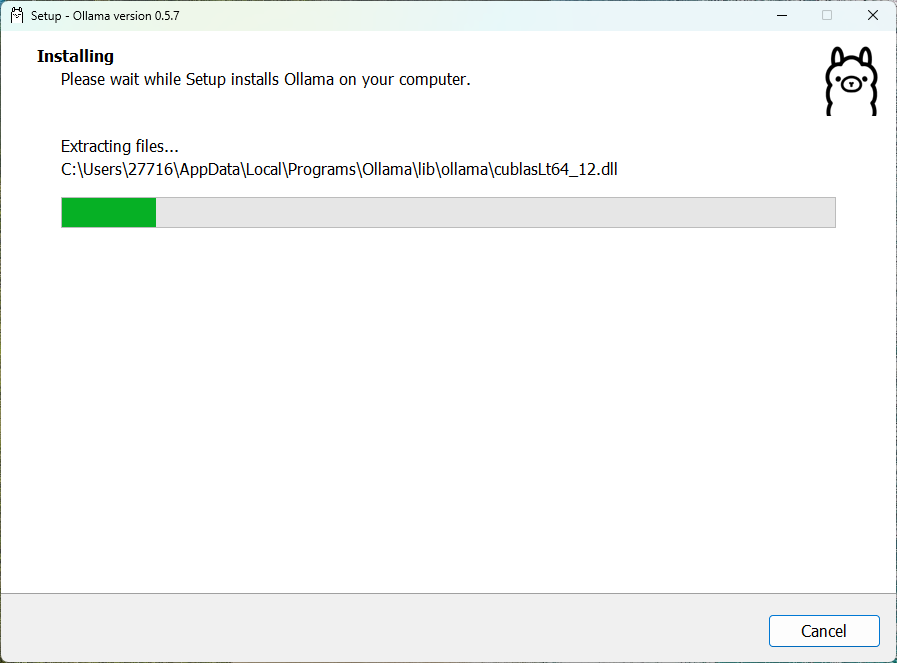 OllamaSetup.exe /DIR=D:\Ollama注意在OllamaSetup.exe所在的文件目录下打开cmd窗口进行执行即可