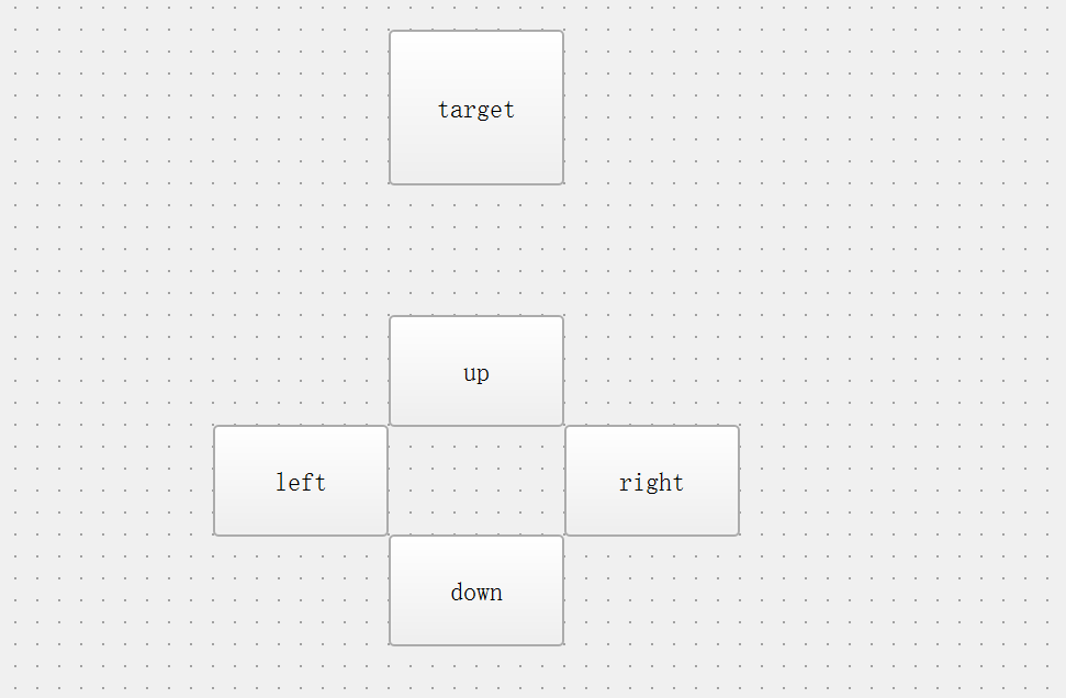 pushButton_target(目标按钮)、pushButton_up(向上移动按钮)、pushButton_down(向下移动按钮)、pushButton_left(向左移动按钮)和 pushButton_right(向右移动按钮)。这些按钮的初始位置和大小可以随意设置。