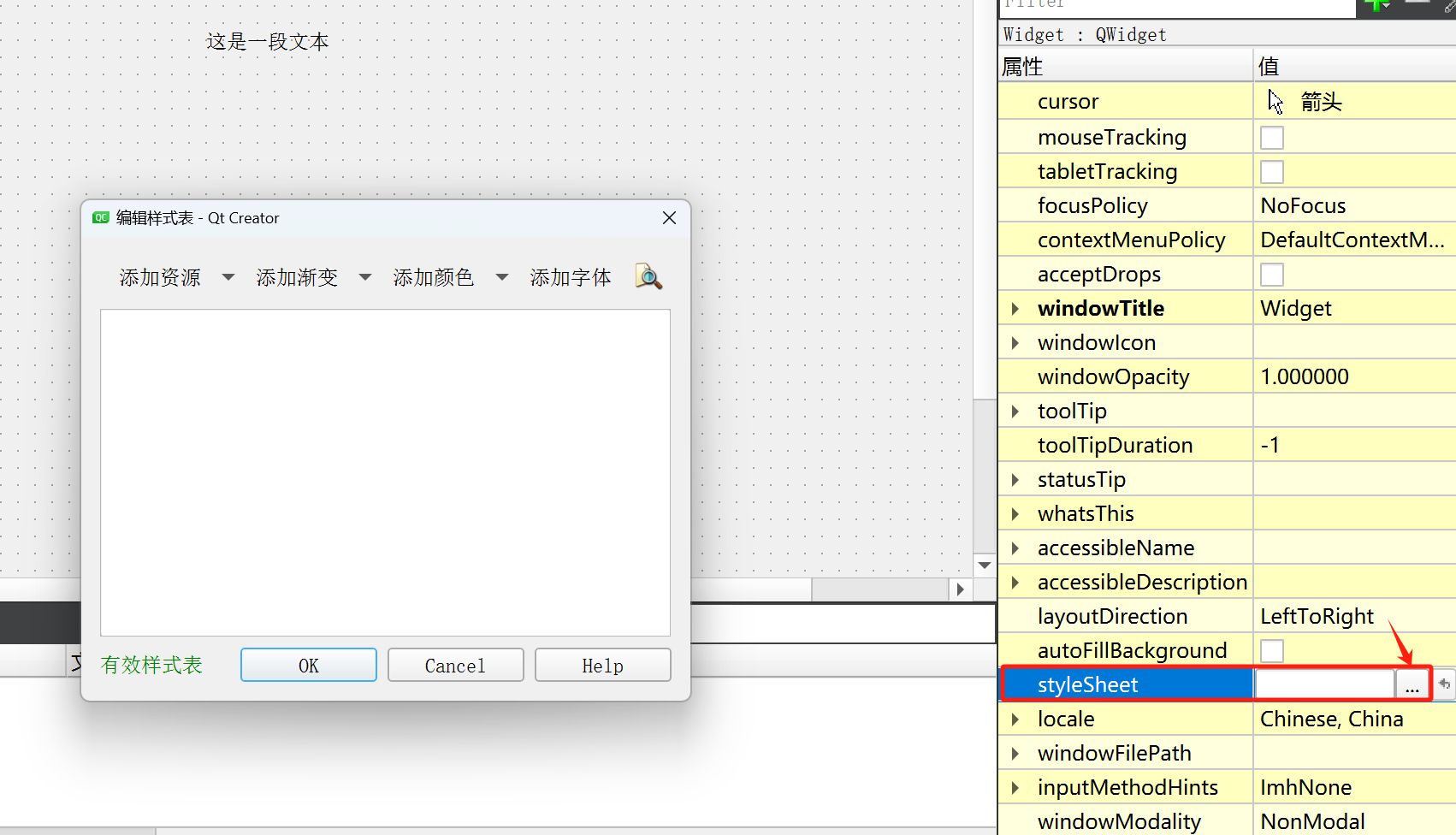 (1)在界面上创建 label,然后编辑右侧的 styleSheet 属性,设置样式
