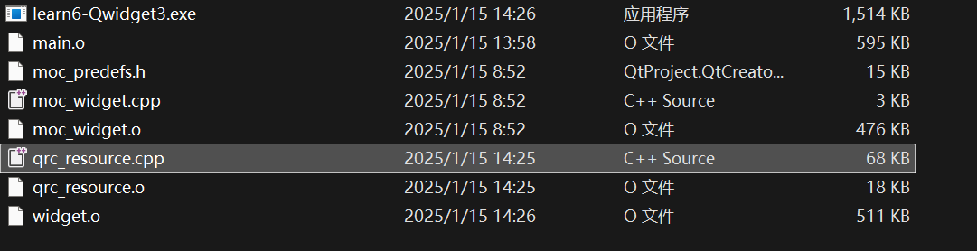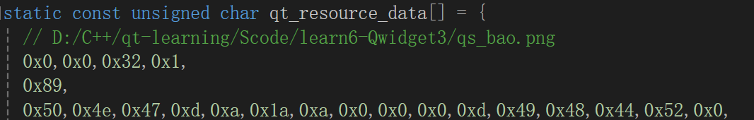 qrc 中导入的图片资源会被转成这个 qrc_resource.cpp(自动生成)这个 c++ 代码,代码查看如下: