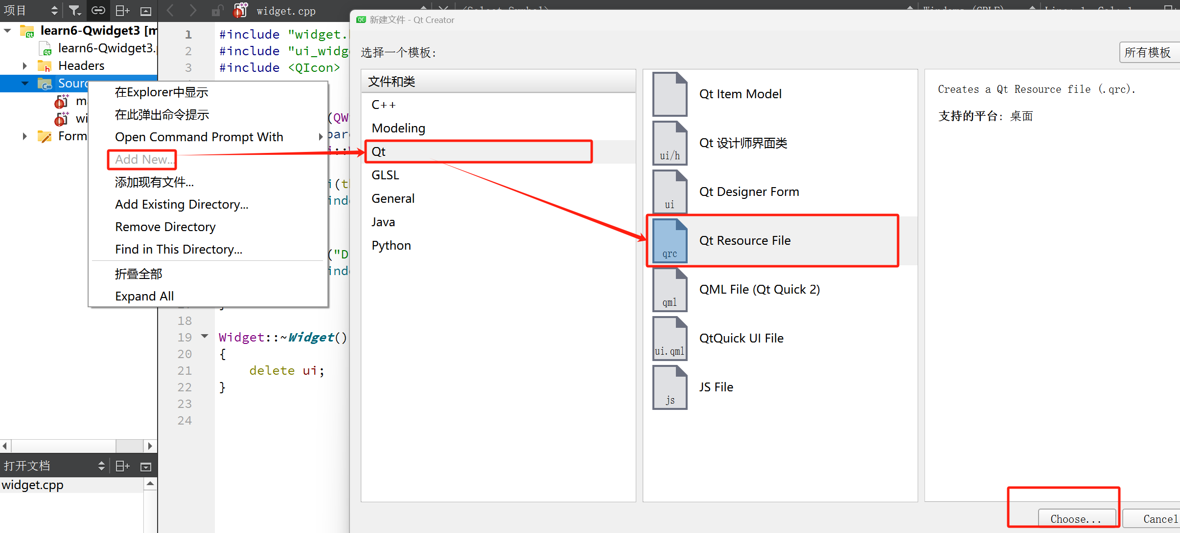 (1)右键项目,创建一个 Qt Resource File(qrc 文件), 文件名随意起(不要带中文),此处叫做 resource.qrc